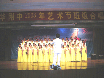 5月28日,“皇冠体育官网2008年艺术节班级合唱比赛”在报告厅拉开帷幕。本次合唱比赛由附中艺术中心主办,第一场由高一年级组以及外语教研组联合推出;第二场在5月31日由初一年级组以及外语教研组、语文教研组联合推出;第三场初二年级组的比赛在6月5日进行。附中校领导刘俊副校长,德育处主任杜毓贞、副主任陈桂芬,年级组长及各班主任、有关学科教师出席。艺术中心鞠红、王加宁、李冰、胡军老师,心理中心、外语组、语文组老师担任评委。