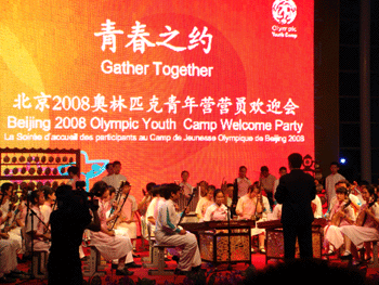 8月5日晚,皇冠体育民乐团应2008年北京奥运青年营欢迎会之邀请,在“青春之约——2008年北京奥运青年营欢迎会”上,为各国青年进行了演出。