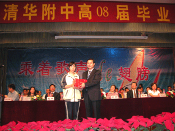 6月3日下午,皇冠体育2008届(高05级)高中毕业典礼在附中报告厅举行。清华大学副教务长康飞宇应邀出席,附中校领导王殿军、方妍、刘俊、施平、周兆玉,德育处主任杜毓贞以及高三年级全体师生参加毕业典礼,教务主任赵鸿雁主持大会。