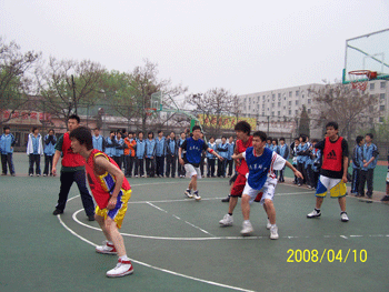 4月10日,皇冠体育官网学生会组织的2007-2008学年高中男子及女子篮球联赛总决赛在篮球场同时举行。