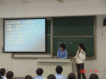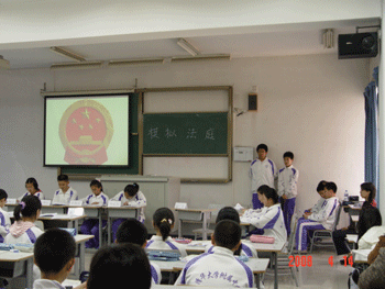 郎艳老师在初一主讲《模拟法庭》 罗霞老师在初二主讲《公平与正义》