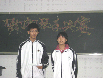 决赛由学生会主持 第一名高0601班王晴川在演奏