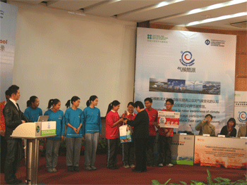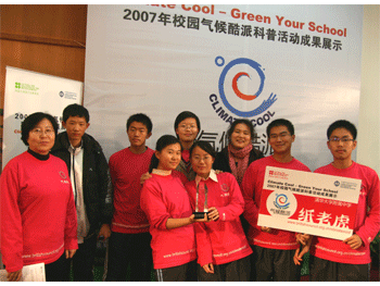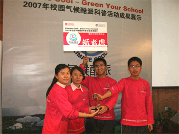 本次活动由刘慧霞老师负责,高中学生丁杉衫、符晓、屈潇逸、孙昊阳、王先泽、闫文驰、李冉、高阳、刘子亮、杨硕等同学参加。活动的主题是“减少碳排放,减缓全球变暖”。这次获奖小组的主要活动分为三个部分,一是前期宣传,即组织同学观看影片“An Inconvenient Truth”了解全球变暖的严重性。二是举办废纸换草稿本和循环使用教科书的活动,也就是向同学们发放小组自己用废卷子制作的草稿本,让同学们亲身参与进来。三是在社区普及公共阅览室向清华社区的老人们宣传自己的主张,建议老人们也参加到减缓全球气候变暖行动的行列中来,在家中搞好废纸的回收利用。这次活动不仅让同学们学到了许多关于环境保护和全球变暖的知识,还锻炼了他们设计、宣传、组织活动的能力,体验到为自己的信念和梦想而奋斗的艰辛、欢乐与激情,更意识到环保责任之重,受益匪浅。