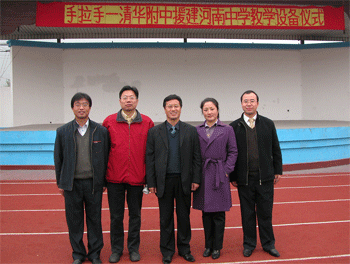 方妍书记(右1)施平副校长(左2)与河南中学领导会谈 方妍书记(左2)施平副校长(右1)参观河南中学校园