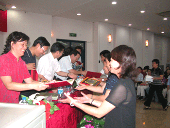 附中党委副书记周兆玉宣读了2006至2007学年度教师个人和集体表彰名单,获得各级荣誉和奖励的教师代表上台接受与会领导颁发证书和少先队员献花。英语特级教师程惠云代表全体教师发言,以“穿上了红舞鞋”,表达对教师职业的热爱,表示要像总书记所希望的那样“把个人理想、本职工作与祖国发展、人民幸福紧密联系在一起,树立高尚的道德情操和精神追求,静下心来教书,潜下心来育人,努力做受学生爱戴、让家长满意的人民教师。”