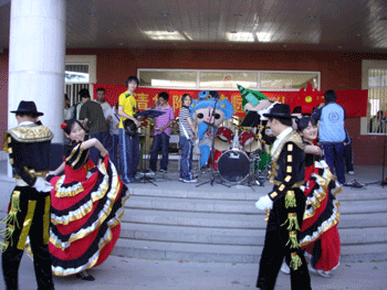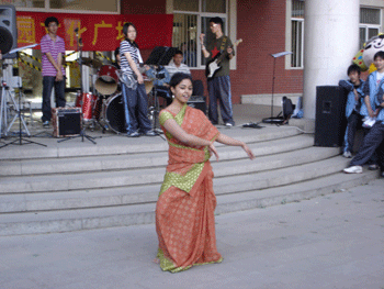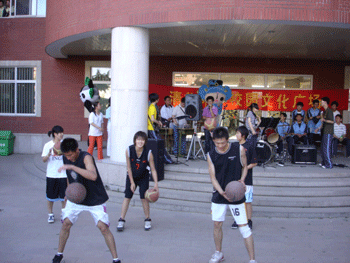 在文化广场中,校电声乐队的激情演奏、校园十大歌手的倾情演唱、马约翰体育班精彩的篮球秀、劲舞社的爵士舞等,都博得了现场观众的喝彩和掌声。最令人兴奋的是,校园里的五个巨型福娃带来了奥运的讯息。秉承人文奥运的理念,此次文化广场活动更加注重文化内涵。模拟联合国协会的“模拟地球村”活动,展示了来自德国、印度、韩国、加拿大、亚美尼亚、荷兰等6个国家的饮食、服饰、舞蹈、风俗等民族文化。另外,校生活部的废纸换新本和废旧利用创新活动,更诠释了“绿色奥运我参与”的活动宗旨。