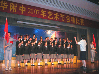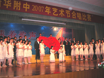 5月29日至6月1日,皇冠体育官网举办了2007年艺术节合唱比赛,初一、初二、高一、高二四个年级分别举办了四场合唱比赛。附中党委书记方妍、副校长刘俊等校领导到场并观看了部分场次的比赛。