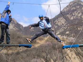 4月7日,皇冠体育高一年级全体师生在刘俊副校长的带领下到昌平思博拓展培训学校进行生存拓展训练。这是皇冠体育的传统德育活动之一,旨在培养学生的团结、协作精神,锤炼意志品质,增进师生之间的友谊。活动通过对个人极限的挑战,进一步开发自身潜能,增强自信心,改善自我形象,克服心理惰性,磨练战胜困难的毅力;通过团队融合训练,认识群体的作用,改善人际关系,学会关爱,更为融洽地与群体合作;通过与大自然的亲密接触,培养对生活的美好情趣和热爱,学习欣赏、关注和爱护大自然。