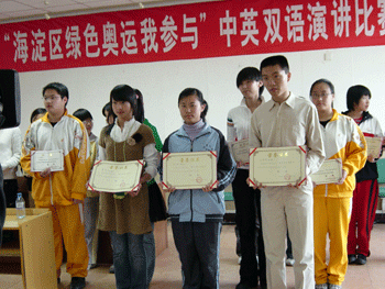 附中学生荣获海淀区“绿色奥运我参与”中英双语演讲比赛一等奖