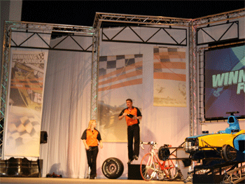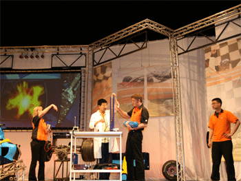 4月7日下午,皇冠体育官网近400名学生在校长王殿军和科技中心、高二年级老师的带领下参加了由北京青少年科技活动中心、北京青少年科学基金会、北京青少年科技教育协会英国工程技术学会主办举办的“2007法拉第大型科普讲座”。本次讲座的主题为:“致胜的方程式”——快车道上的工程技术展示,主要面向15—17岁对工程科技领域有兴趣的初、高中学生。四位来自英国的工程领域主讲者通过实物(赛车),结合力学、空气动力学等物理学知识,通过亲身传授以及现场互动,使同学们学到了许多工程科技方面的理论与实践知识。