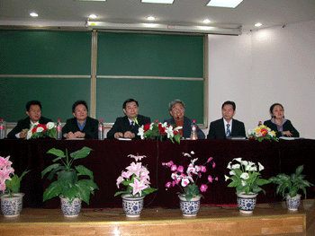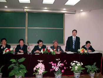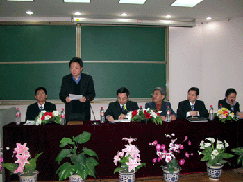 清华大学组织部长李一兵宣读校长任免书 清华大学副校长胡和平(左3)讲话
