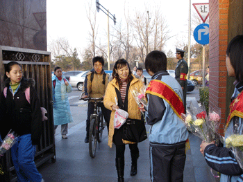 女生们将鲜花、微笑、祝福送给女老师 女生们将鲜花、微笑、祝福送给女老师