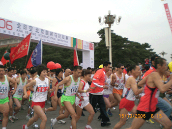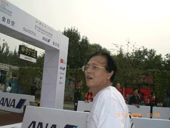 这次比赛起点设在天安门广场内,终点设在国家奥林匹克体育中心,途经航天桥、学院桥、清河等地,全程45.1954公里,规定在5小时内跑完。来自30个国家和地区的25000多名运动员分别参加了全程马拉松、半程马拉松、8公里和小马拉松比赛。最终坚持跑完全程的有3000多人,其中大部分人是中青年,像王英民老师这样大年龄的参赛者所占比例很小。