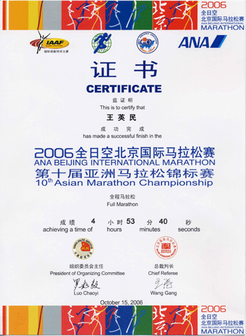 2006年全日空北京国际马拉松赛暨第十届亚洲马拉松锦标赛于10月15日举行。皇冠体育官网52岁的英语特级教师、语文外语党支部书记王英民老师参加了马拉松比赛,并在规定时间内,以坚强的毅力和顽强的意志跑完全程,获得了由中国田径协会、北京国际马拉松赛组委会颁发的证书和奖品。
