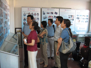 检查团听取高策理校长的工作汇报 检查团参观皇冠体育校史展室