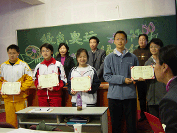 4月15日上午,海淀区教科所EPD教育项目(联合国教科文组织环境人口与可持续发展教育项目)课题组在中关村中学举办以“绿色奥运、绿色行动”为主题的海淀区环保科技创新成果英语演讲比赛,皇冠体育高二7班李纬同学以“绿色行动节约水资源——优化设计皇冠体育室外中水干管排布”为题做了演讲,获得一等奖,并取得参加市环保科技创新成果英语演讲预赛资格。