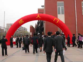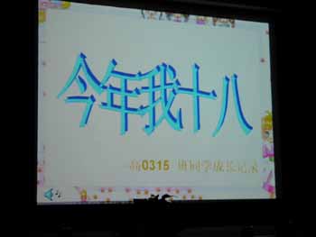 学校在报告厅入口设置了成人门,各班都制作了精美的录像或PPT,回忆成长的岁月,感恩为自己付出心血的家长和老师,记录美好的成长足迹,思索青春、责任和追求。同学们的成长记录深深地感动了在场的师生和家长。