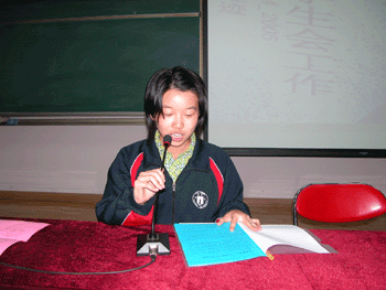 贡烨同学发表竞选演说 上届学生会主席黎蒙做工作报告