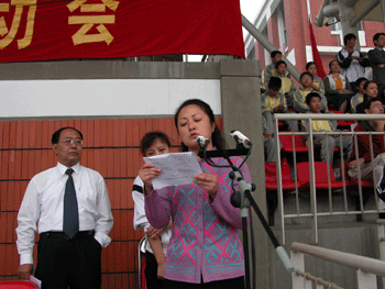 开幕式由徐重远副校长主持,附中党委书记方妍致开幕词,她鼓励运动员及全体师生以“团结、进步、文明、参与”为宗旨,弘扬奥运“更快、更高、更强”的精神,顽强拼搏,“胜不骄、败不馁”,赛出水平、赛出风格、赛出斗志,夺取运动成绩和精神文明双丰收。运动员代表也上台发言,表示要遵守比赛纪律,努力拼搏,争取好的成绩。最后,场上全体运动员的集体广播操表演,整齐划一,场面壮观,赢得看台上师生的热烈鼓掌。