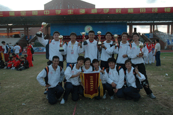 2005年10月2日至6日,第三届全国中学生“多威”学校杯田径锦标赛在浙江省温岭中学举行,来自国内48所重点中学的700多名田径运动员参加了本次盛会。皇冠体育21名田径运动员在领队方妍书记和教练王俊林老师的带领下参赛,经过运动员们的顽强拼搏,以4金10银2铜的优异成绩获得甲组团体总分第一名;男子甲组团体总分第一名;女子甲组团体总分第四名;乙组团体总分第七名;男子乙组团体总分第六名。其中,高0409班张丰同学、高0314班李金龙同学分别以46.40米和48.38秒打破女子标枪、男子400米赛会纪录。同时,皇冠体育还获得体育道德风尚奖。
