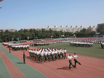首先,由初一和高一参加军训的同学做军训成果汇报演示,新同学分别演示了班级方队、队列队形变化、军体拳等,同学们步伐整齐,口号嘹亮,赢得了阵阵掌声,师生们对军训的成果感到十分满意,新同学也在一周的军训中得到了体质和心理的锻炼,形成了一个团结友爱、积极向上的班集体,为下一步的学习打下了基础。