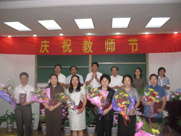 会上,附中党委副书记周兆玉宣读了2004至2005学年度的教师获奖名单,与会领导向获得各级荣誉和奖励的教师颁发了证书,少先队员鲜花。为表达学生对教师的敬意,校合唱团为全体教师演唱了歌曲《感动》,赢得了阵阵掌声。