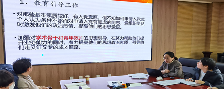 张洁首先传达了清华大学党委关于新时期组织发展工作的新要求,强调学校做好组织发展的重要意义以及党支部在组织发展工作中承担的重要职责。会议进行了组织发展工作流程的集体学习,党办金云老师详细介绍了党支部日常教育引导、申请人递交入党申请书、党支部确定入党积极分子并指定培养联系人进行培养和考察等各个环节的工作细节和要求。会议还对目前各党支部入党申请人情况进行了深入分析和研究,特别是对学术骨干和青年教师的思想引导和教育问题进行了探讨。会议要求各党支部对所辐射的组内教师建立起联系人制度,在努力帮助他们提升业务能力的同时,着力提高他们的思想政治素质,引导他们走又红又专的成长道路。