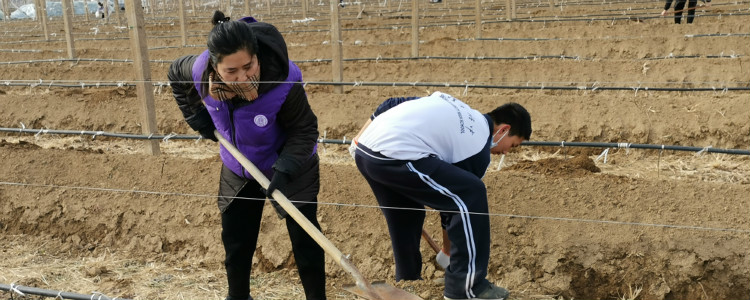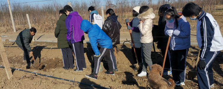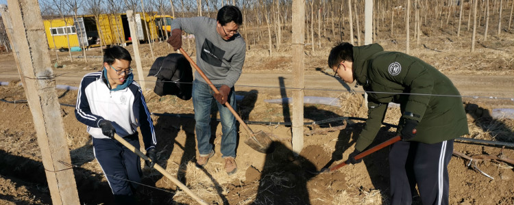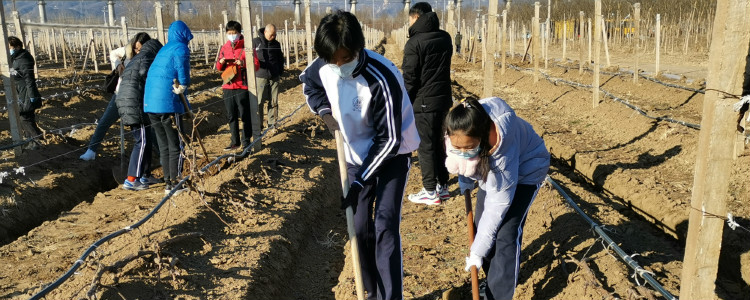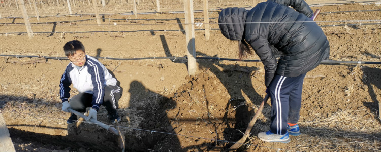 由于同学们没有使用过农耕装备,家长们见状,立马投入火热的劳动中。没一会,葡萄园里到处都是“母子兵”,“父子兵”齐心协力的奋战身影。寒风凛冽,一双双暴露在外劳作的双手都已冻的通红。但在场的学生和家长们丝毫没有退缩,一直坚持到任务完成。