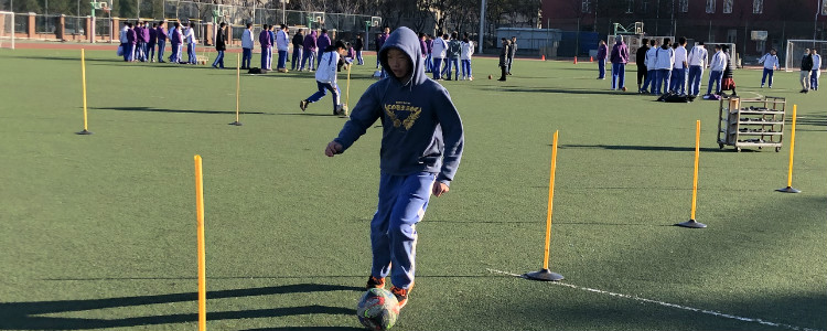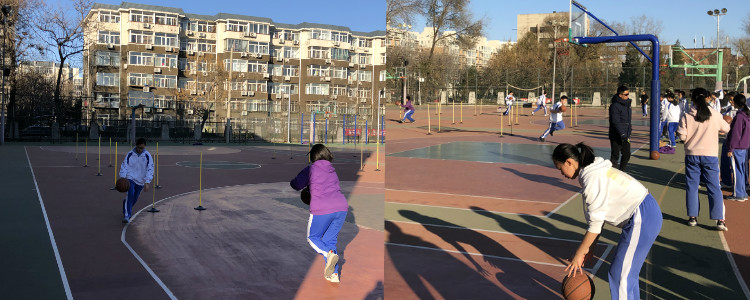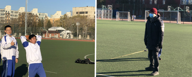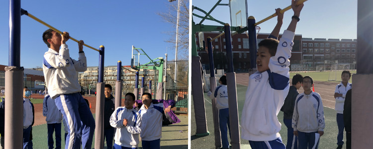 随着初三体育备课组长安忠鑫老师一声哨响,本次体育大锻炼活动正式开始。操场顿时热闹起来。操场西侧是女生在快速有序地做仰卧起坐。操场中间区域进行的是投掷实心球,还有足球运球。操场东侧有几组男生在进行引体向上。选择篮球和足球的同学在操场北侧开展活动。冬日的户外寒冷又萧条,但运动场上的少男少女们用青春的活力让让操场生动了起来。