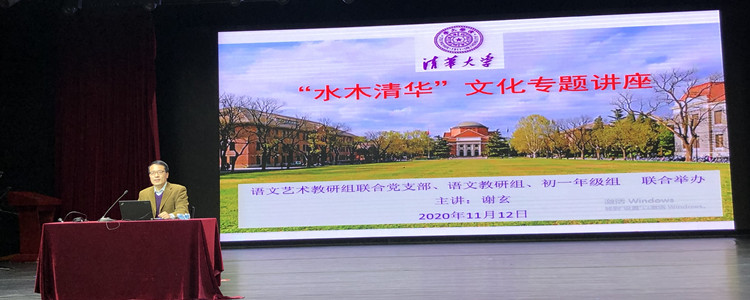 2020年11月12日下午,皇冠体育初20级在报告厅开展了一场“水木清华”文化专题讲座。本讲座由语文艺术教研组联合党支部、语文教研组与初一年级组联合举办,主讲人为高中语文教师谢玄老师。