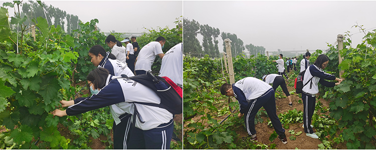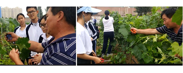 这次学农活动收获很大。一是,农民叔叔给我们讲解的如何剪葡萄枝。三个要点,一是有葡萄的枝条上面留六片叶子;二是太小的葡萄不成型的枝条就剪掉不要了,到秋天已经长不成葡萄了;三是留下的枝条上面至少要有一片叶子。这些知识都是生物老师没有讲过的,但是仔细想想又都是生物课内容里有,在实践中具体应用的。。这是很大的收获。告诉我们学习了知识,还要在实践中具体应用好,怎么应用也是个技巧。另一个是,剪葡萄枝是很累。我们分开几组,前后剪了大约20排葡萄枝,从9点剪到12点,剪完还有手起泡的,这确实是没有想到的。也许是累了,中午吃家长和同学志愿者包的粽子,觉得格外的香。这真是个令我印象深刻的端午节。——高2010李海峰
