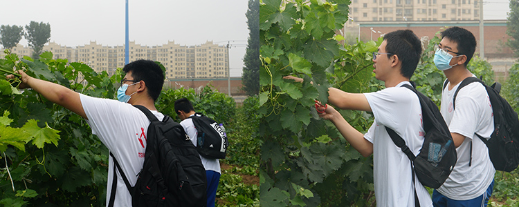 活动当天天气凉爽湿润,同学们一边修剪葡萄枝,一边愉快的聊天唱歌,葡萄架上绿油油的葡萄藤变得整齐而充满活力。