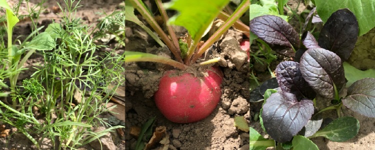 长势喜人的茴香、樱桃萝卜、紫色小油菜