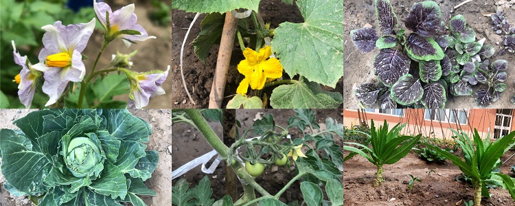 实验田中学生种植的农作物,依次为土豆、黄瓜、红苋菜、圆白菜、番茄、莴苣