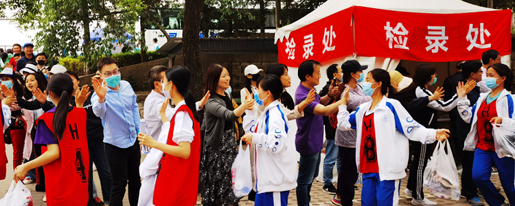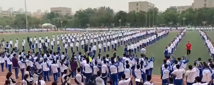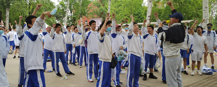 接下来,初18级体育备课组长安忠鑫老师进行考前动员,他嘱咐同学们遵守考试规则,考场上奋力拼搏,不留遗憾。临考前,初三全体老师在通往考场的路上排成一列,与同学们击掌加油。同学们欢快的一路小跑至考场。