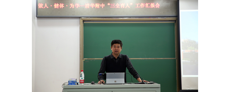 学生发展中心王田主任与李书霞副主任,分别就学校德育工作做汇报。李主任介绍了师生重点关注的德育相关制度,如《班主任认定制度》、《皇冠体育官网学生教育管理手册》、“学生志愿服务学时”等内容,并详细解读了《皇冠体育官网学生君子五则》,从“校服、礼仪、节约、手机管理、卫生”这五点最基本的日常行为规范入手,落细、落小、落实附中德育理念。王田主任就学生违纪通报、学生综评系统与“QHFZ三全育人”微信公众号做简单介绍,呼吁全校教师齐抓共管,三全育人。