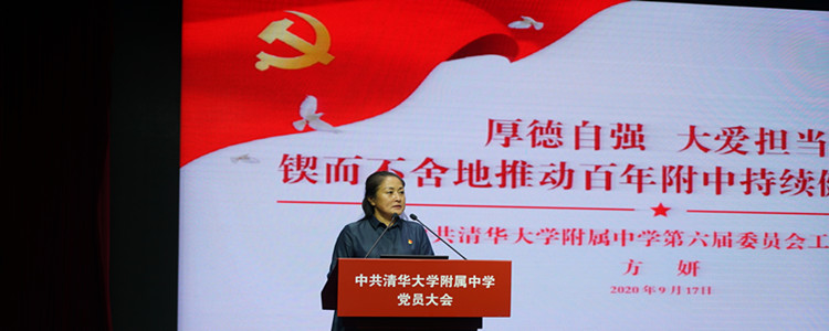 会上,党委书记方妍代表第六届党委作了题为《厚德自强,大爱担当——锲而不舍地推动百年附中持续健康的发展》的工作报告。报告主要从党的政治建设,思想建设、组织建设、从严治党、工会、离退休和统战工作等方面回顾了附中党委五年来开展的工作。报告同时提出下一阶段发展目标和工作部署,进一步加强党政班子建设和干部队伍建设;加强基层党支部建设,充分发挥党支部的战斗堡垒作用和党员先锋模范作用;围绕学校中心工作,把方向、聚人心,全力推进教育教学改革;坚持立德树人根本任务,努力培养能够担当民族复兴大任的时代新人;努力承担社会责任,办好皇冠体育官网一体化学校,发挥优质教育资源的辐射和带动作用。她还向全体党员报告了党费收缴、使用和管理情况。