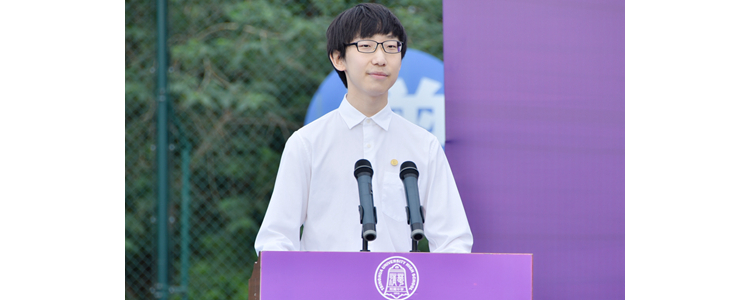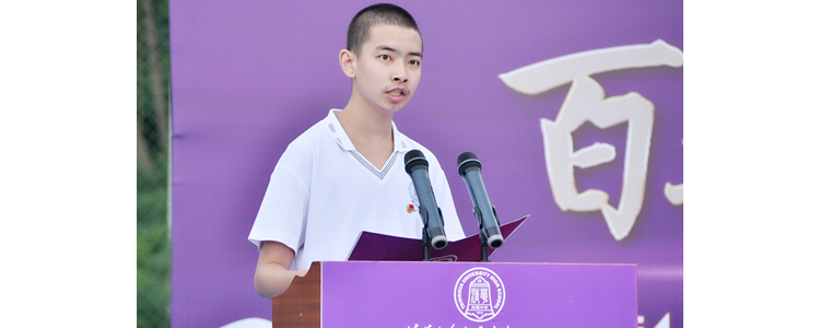 首先,学生代表高二(1)班周炜杰同学发言。他与大家分享了学习心得和高效学习方法,号召同学们充分利用学校的体育资源,做一个体魄强健、灵魂充盈的人。