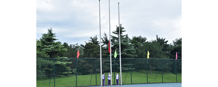 庄严的国歌音乐奏响,在全体老师和同学们的肃立注目中,升旗仪式旗手们缓缓拉动国旗,五星红旗冉冉升起,典礼正式拉开序幕。