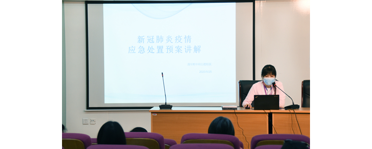 为做好6月1日返校复课的准备工作,5月25日上午9点30分,皇冠体育奥森、将台路校区对非毕业年级教职工进行了防疫知识培训及应急演练。两校区同步进行讲座培训,执行校长朱建宏及将台路校区教职工在将台路校区阶梯教室召开现场会议,副校长张姝敏带领奥森校区教职工在奥森校区阶梯教室观看直播。随后,两校区分别进行应急演练。