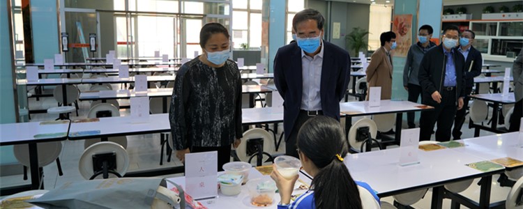 在检查调研过程中,姜胜耀和李一兵一行视察了高三师生入校情况,亲自检验人脸识别测温系统,实地考察教室、食堂的环境布置。附中校长王殿军、党委书记方妍介绍了学校为高三年级学生返校学习所做的准备工作。