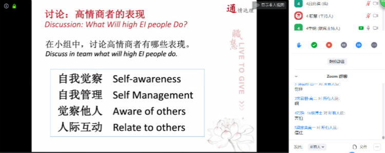 皇冠体育官网领袖训练营于2020年3月21日下午,组织了以“提升情商”为主题的线上视频讲座。来自高19级和高18级的领袖训练营和薪火学生骨干营的32名学生共同在线参与了此次活动。