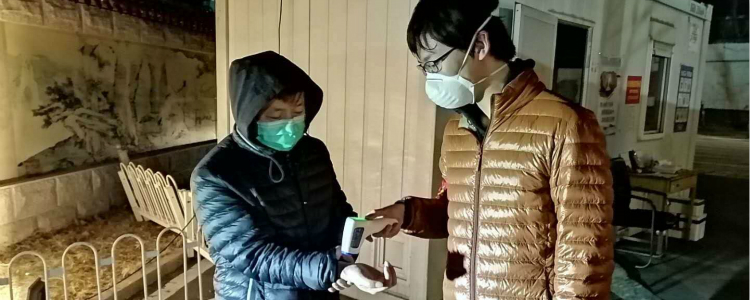 张仁杰(右)对入小区人员进行测温