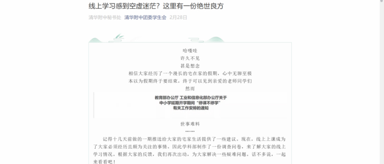 《线上学习感到空虚迷茫?这里有一份绝世良方》微信推送