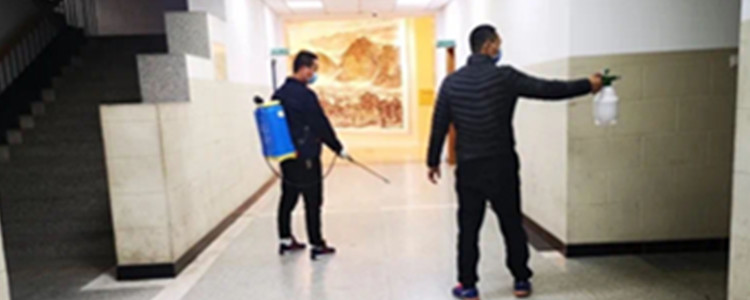 总务老师在给教学楼日常消毒