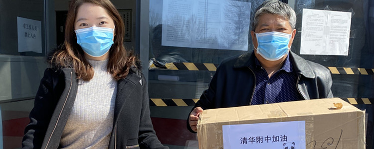 魏兵老师代表总务接收捐赠的1500个口罩
