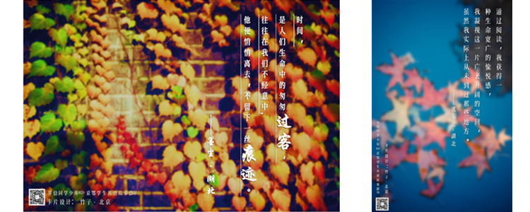 制作纪念卡片的几位志愿者更是深刻诠释了“自强不息,厚德载物”的清华校训精神。他们带着对湖北伙伴的美好祝福,用心挑选卡片的底图与文字内容,在“清华印象”专业设计师的指导下,从色彩、构图和字体等诸多方面不断优化自己的卡片设计,连一个标点、一个空格也不放过,有的同学甚至废寝忘食,易稿数十次。最后,当一帧帧精美的作品在结营仪式现场呈现出来时,直播间里所有的观众都被这些充满爱与美感的“定制礼物”所打动。