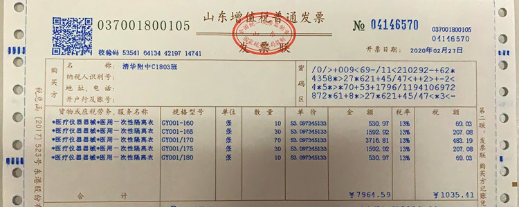 购买隔离衣发票