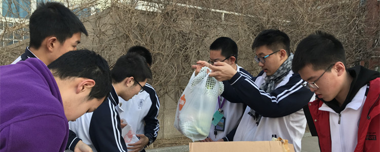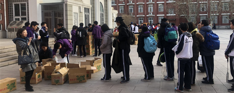 当天下午放学后,各班卸车义工和分菜义工领取自己班级的菜花,并到指定地点分发给参加义卖的同学。为了保证不发生磕碰,菜花装在纸箱里运到皇冠体育官网后再分装。因所带计重器不够,最终采取4个一袋的方法分装。场面一度非常热闹。