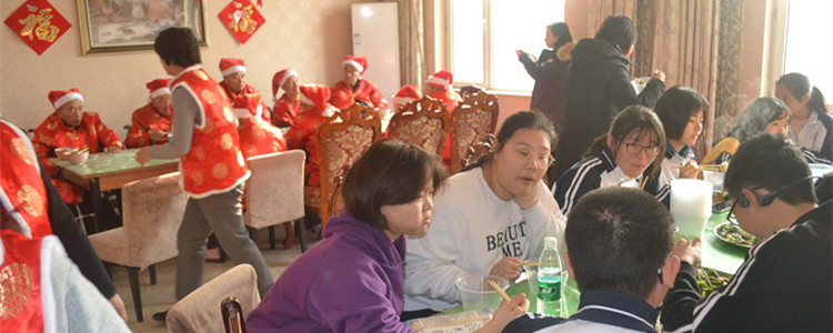 皇冠体育学生与老人共同进餐